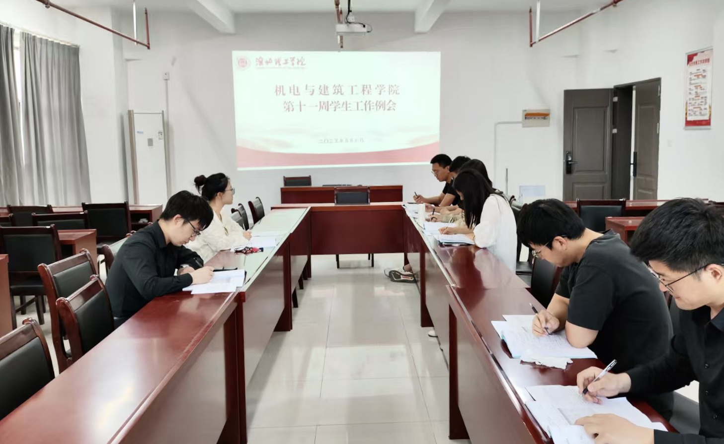 2025年5月6日下午,永利集团304am登录在行政楼214会议室召开第十一周学生工作例会。会议由学院党总支书记助理邓金鑫主持,团总支书记张亚飞及全体辅导员参会。