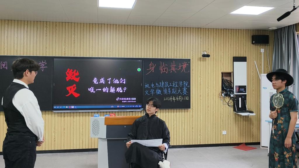 为迎接第30个“世界读书日”,深化书香校园建设,永利集团304am登录于2025年4月21日在一教211教室成功举办“阅见美学,身临其境”文学微情景剧大赛。本次活动创新性地将“微情景剧”与“经典阅读”相结合,旨在通过沉浸式艺术体验提升学生的文学素养和审美能力。活动由学院党总支书记助理邓金鑫、团总支书记张亚飞及辅导员们担任评委。