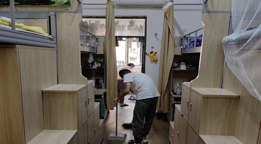 活动中,各宿舍同学们分工明确、热情高涨,卷子袖子,拿起拖把,以积极认真的态度打扫宿舍每一个角落,充分展现了不怕脏、不怕累、不怕苦的精神。经过同学们辛苦劳动,宿舍桌椅、地面、阳台、卫生间焕然一新,为营造良好的宿舍环境贡献出了自己的力量,大大提升了居住舒适度。