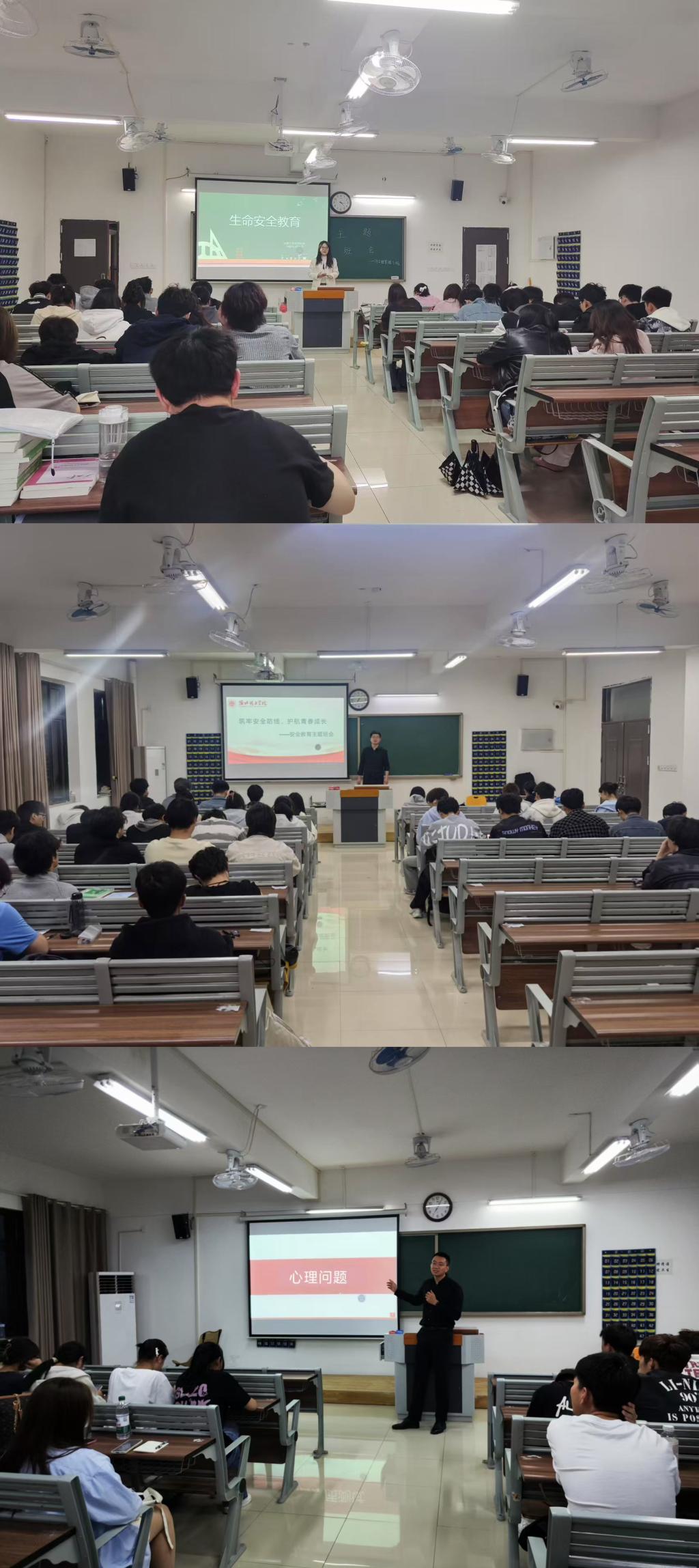 班会伊始,各班辅导员结合机建学院专业特色,点明生命健康与安全对于工科学生的重要性。机械操作、建筑施工等实践课程较多,潜在安全风险不容忽视,唯有强化安全意识,才能保障学习与实践活动的顺利开展。随后,通过播放安全教育警示片、案例分析等形式,向学生们详细讲解了实验室安全、建筑施工安全、网络安全、交通安全等方面的知识。一个个触目惊心的案例,让学生们深刻认识到安全事故的严重后果,敲响了安全警钟。