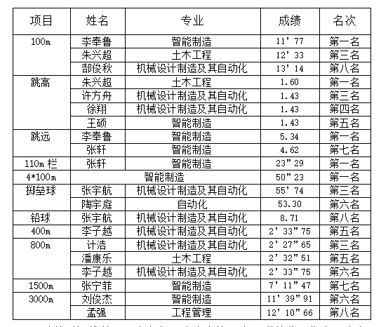 为弘扬体育精神,创建和谐友爱的校园氛围,丰富校园生活,增强学生身体素质,促进学生全面发展,我校于5月17日至5月18日举办第二届田径运动会,机建学子积极参加。本次运动会设有多个比赛项目,包括短跑、长跑、接力、跳高、跳远、三级跳远、铅球、掷垒球等,吸引了全校师生的广泛关注。